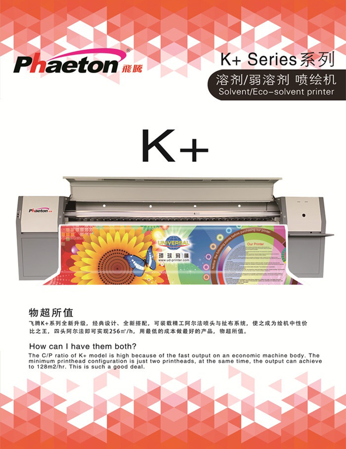 飛騰K+系列全新升級,經(jīng)典設(shè)計、全新搭配,可裝載精工阿爾法噴頭與扯布系統(tǒng),使之成為繪機(jī)中性價比之王,四頭阿爾法即可實(shí)現(xiàn)256㎡/h,用最低的成本做最好的產(chǎn)品,物超所值。